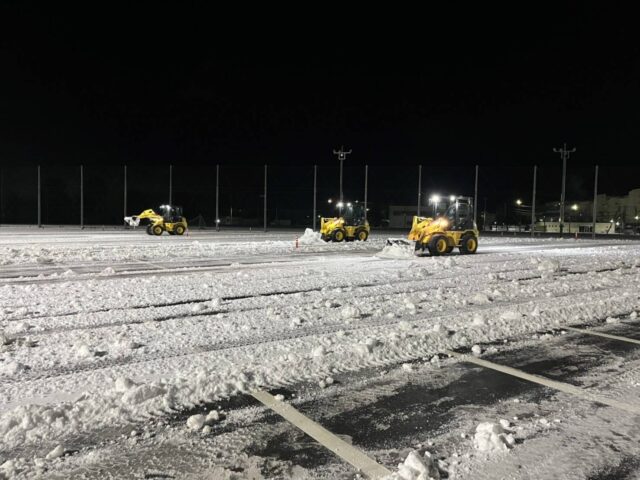 先日この地方を襲った大雪の為、企業様駐車場の除雪作業の様子です。