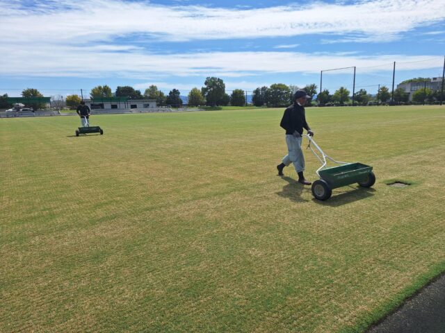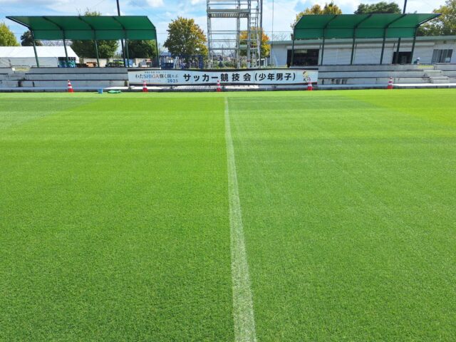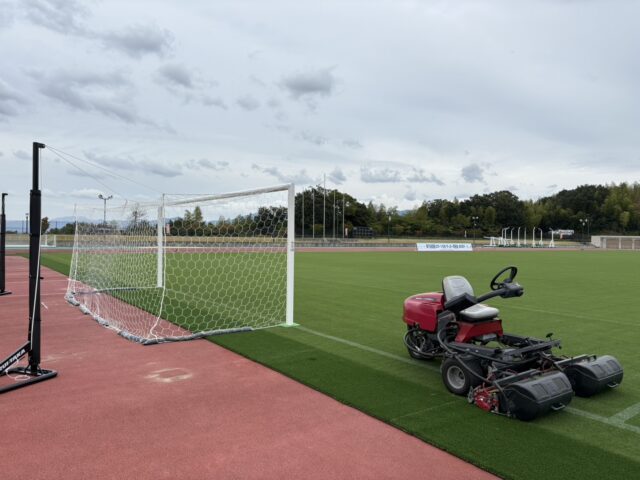 「わたSHIGA輝く国スポ・障スポ2025」が開幕して早1週間が経とうとしています。滋賀県各地で熱い戦いが繰り広げられており、普段静かな町が全国から訪れる方々で大いに賑わっています。選手の皆様が最高のパフォーマンスを発揮できますよう、弊社も大会日に合わせて心を込めてグラウンド整備に取り組んでおります。サッカー(成年男子と少年男子)が開催されます2会場の準備の様子をご紹介いたします。大会当日には最良のコンディションで皆様をお迎えいたします。